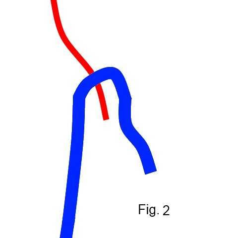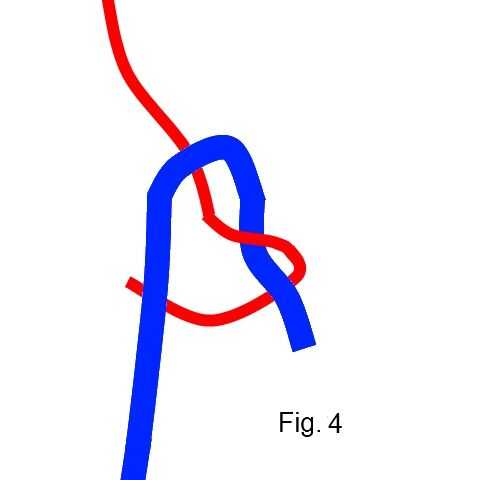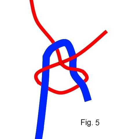 Pase el extremo suelto de la delgada línea debajo de sí mismo que pasa por en medio de la Bahía (Fig. 5) y estire ambas líneas. Eso es todo allí está a él.