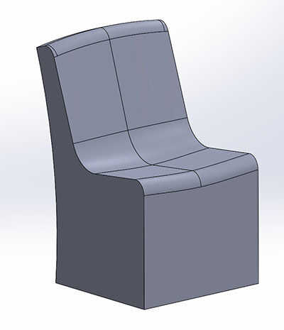 Usted puede hacer la silla bastante mucho cualquier forma que ganas. Usé un par de medidas de mi mesa y las sillas existentes, para conseguir lo que buscaba la forma de la silla en Solidworks. Quería que la silla se curva ligeramente en el asiento y el respaldo para que sea más cómodo - sin embargo, estos detalles resultados para ser un poco de una pérdida de tiempo. Porque la resolución del modelo final está limitada por el número de cartón cortado salidas utilizados, estos detalles en su mayoría se perdieron pero tomó más esfuerzo para hacer puesto que cada sola "rebanada" de la silla era ligeramente diferente. Que tenlo en cuenta cuando usted está diseñando su propia silla.