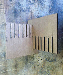 Antes de seguir adelante y cortar todo el modelo para arriba en piezas en 2D, debería hacer algunas muestras para averiguar lo que ajuste las ranuras de tamaño que usted necesita para una buena prensa. Puesto que cada cortador del laser es un poco diferente, se trata de algo que sólo tendrás que hacer experimentalmente. Me hizo una dos muestra piezas con ranuras de aumentar espesor y probaron hacia fuera a averiguar que tenía el mejor ajuste. Usted quiere que sea lo suficientemente apretada como para que las piezas no soltarse por su cuenta.
