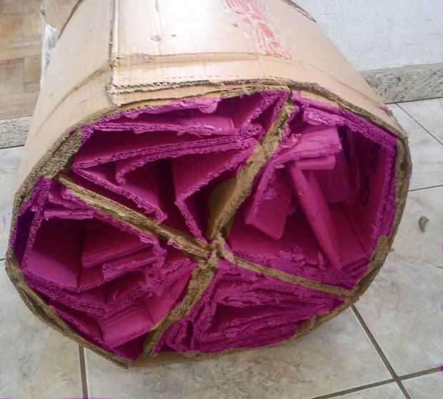 2) después de hacer una "X" lo coloca dentro de un cilindro de plegado de cartón. Aplicar cinta y pegamento caliente.