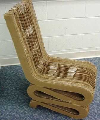 Nuestro primer prototipo se basa en arquitectura es de Frank mueva la silla,"popularizado en la década de 1970. Gehry descubrió que muchas veces en capas de cartón construye fuerza suficiente para hacerlo conveniente para el uso diario. Él se encendió para crear una serie de objetos muebles, tales como la "Ondulación de los bordes fácil" silla, que aprovechando la versatilidad del cartón como medio. Vamos a hacer lo mismo con nuestra silla.
