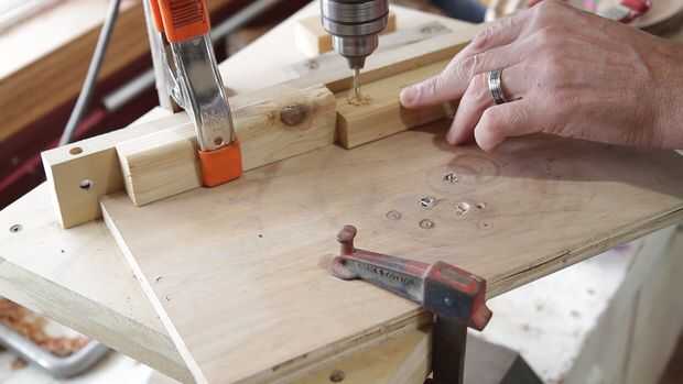 Necesita agujeros de eneldo en todas las piezas, utilizar una prensa del taladro. Configuración de un bloque de tope y cerca.