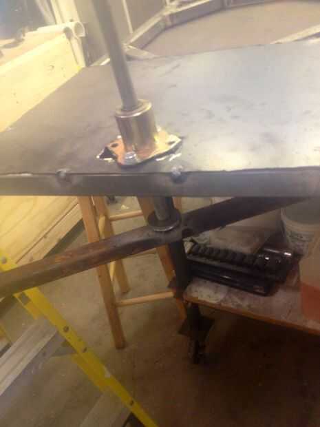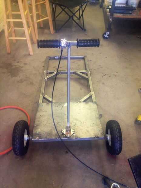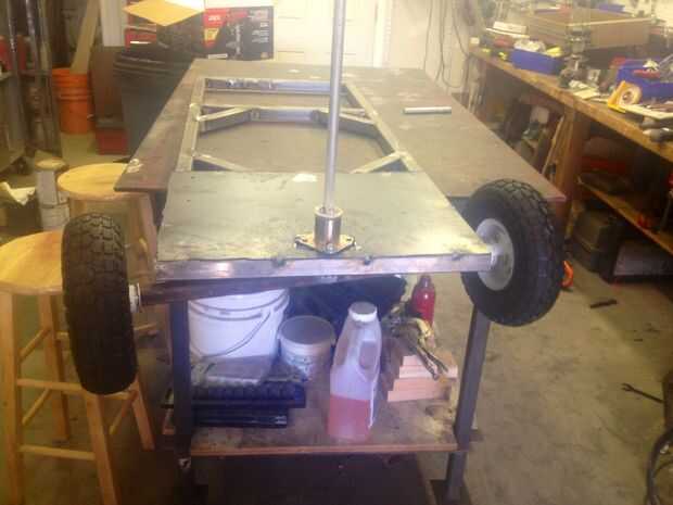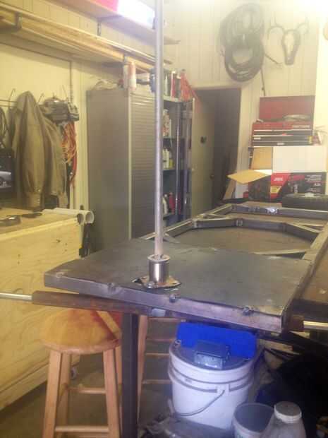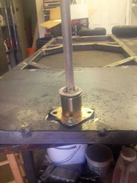Corte un viejo neumático de giro libre y uso de los rodamientos para sujetar la columna de dirección