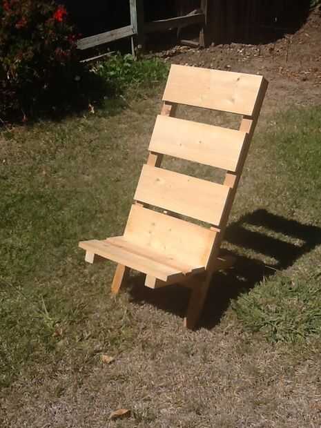 se convirtió una vieja silla ratty en una silla de césped gran!Paso 1: Ratty vieja silla Adquirir una vieja silla.Paso 2: Desnuda vieja silla Quitar viejos cojines rasgados.Paso 3: Vieja silla nuevo Uso de tablas de cedro cerca.-Corte cada junta a 22