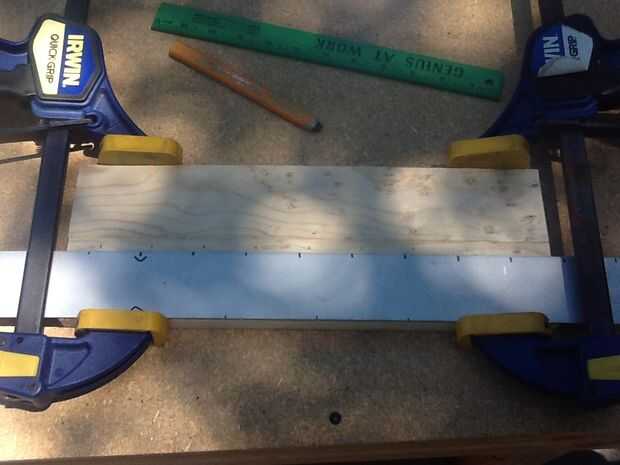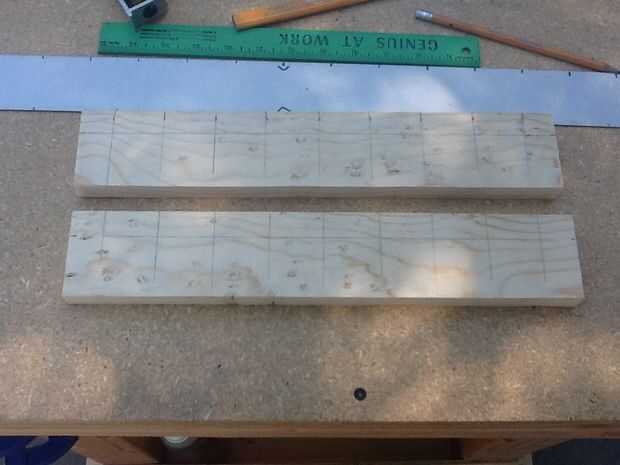 Abrazadera de la parte delantera y trasera carriles juntos.  Marca tu espacio en 1 1/2".  Entonces, en lugar de la mediana de la marca, marque una línea de 3/4" en cada riel.