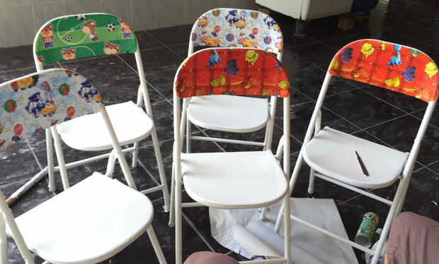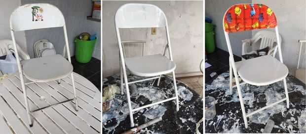 Para el paso 2) imprimación y pintura, elige tu color (ya que son sillas de hierro usé una pintura de esmalte)