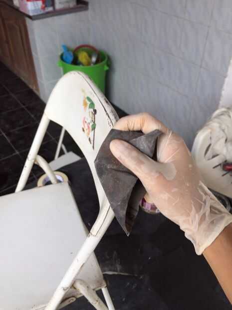 Empezar a lijar las zonas oxidadas, usando primero el menor grano de lija. También tienes que lijar las áreas rayadas.