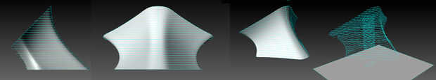 Primero pensé en cómo podía usar pedazos de madera plana para establecer una forma tipo loft apilada. Utilicé un método sencillo a partir de las cuñas de Rhino. En términos simplemente creé varios aviones orientados 1/4" aparte verticalmente (esto era el grosor de la madera estaba cepillado de corte por láser para la silla entera)