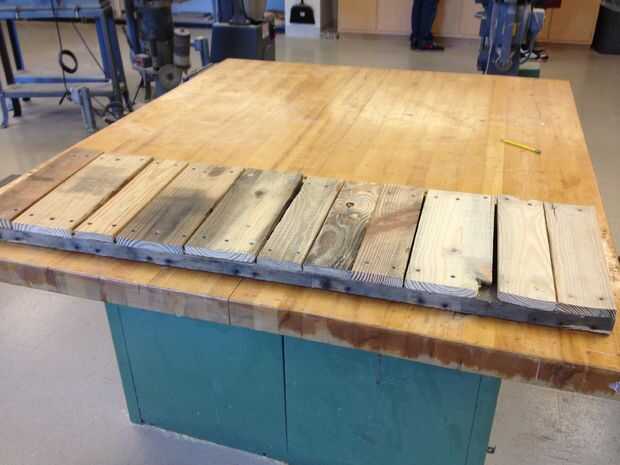 Instructable sobre cómo construir una mesa de plataforma y Presidente de la plataforma.Paso 1: La silla Cortar tablas con el tamaño que desee y atorníllelos con piezas más largas por debajo para crear la base de su silla. Luego cortar dos piezas larg