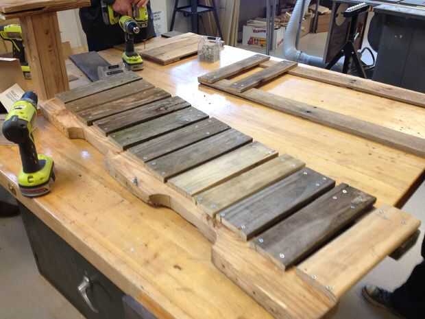 Instructable sobre cómo construir una mesa de plataforma y Presidente de la plataforma.Paso 1: La silla Cortar tablas con el tamaño que desee y atorníllelos con piezas más largas por debajo para crear la base de su silla. Luego cortar dos piezas larg