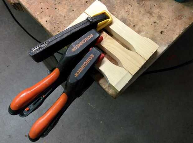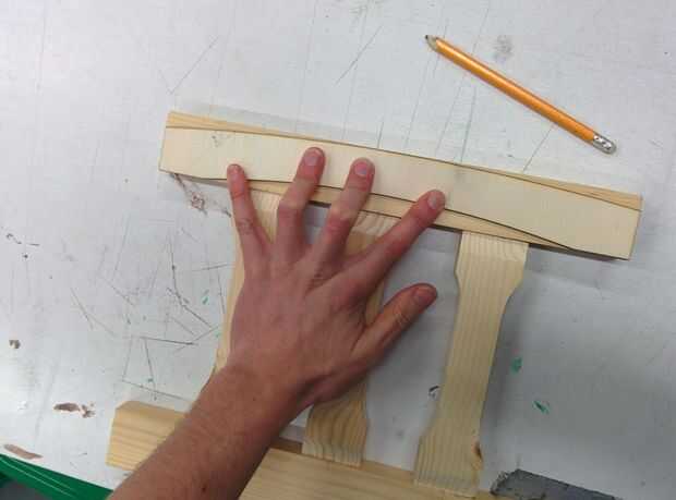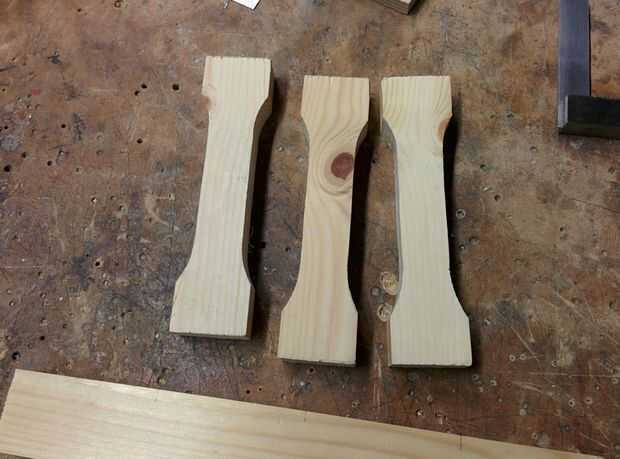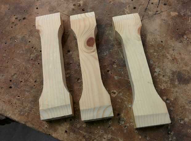 Para hacer los cortes en los ejes, me había hecho una plantilla de un trozo de madera contrachapada, utiliza esto para dibujar las líneas de corte en los ejes y corte en la Sierra de cinta. La plantilla para la curva superior e inferior de los carriles podría ser dibujada a mano alzada pero engañado y cortar éste en el cortador del laser.