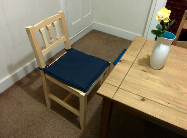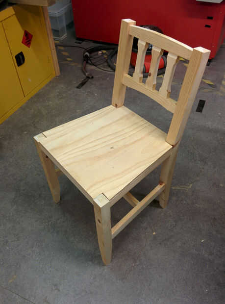 Una vez hecho esto, agarré un pedazo de madera contrachapada y jigsawed un asiento para caber sobre los lados del asiento con las esquinas para las piernas. La idea era esta tapizado con espuma, tela y tapicería (inspirada, naturalmente, Paul vendedores vídeo sobre cómo tapizar un asiento de la silla que salió cuando estaba a medio camino a través de la fabricación de esta silla) pero me quedo sin tiempo para la fecha límite del concurso así que por ahora una almohadilla del asiento se debe hacer. Y estaba tratando de hacer algo que no se veía como muebles de jardín...