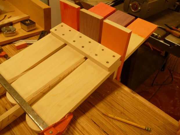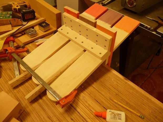 Carril de la posición #2 en el lugar correcto. Asegúrese de que utilizar el espaciador para sostener las piezas en la posición correcta. Tenga en cuenta que una pinza que se utiliza para tirar de uno a la pieza en. Marque la posición del carril luego encolar y atorníllelo en su lugar.