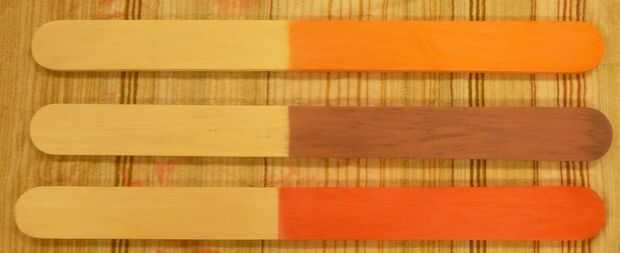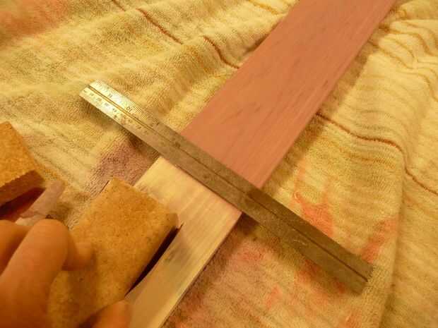 No importa cómo duro intenta controlar hasta qué punto las mechas de tinte cada palo, se mecha paso donde usted lo quiere dejar y se verá feo. Afortunadamente el tinte no es profundo y con determinación un poco, se puede lijar lejos. Utilice papel de lija de grano 120 y arena lejos cualquier tinte más allá de la marca de 22". Ahora tienes tres palitos gigantes.