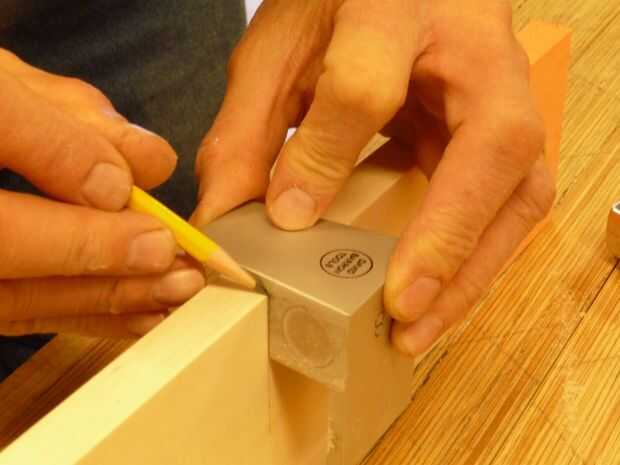 Gire el palillo por lado, pone la guía a continuación a la línea y marca el ángulo.