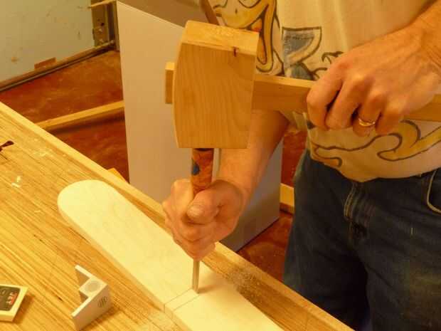 Poner la guía en la línea y permite su imán controlar el corte. Asegúrese de que la corte en el lado inútil de la línea. Esta guía no fue diseñada para cortar tan profundo, así que cuando ya no funciona como una guía, quitar y cortar el resto por el ojo. Todo listo el corte hecho servirá como una guía. Después de terminar ambos cortes usan un formón para eliminar los residuos. Trate de una de las piezas encajan en la articulación. Debe ser cómodo pero no difícil de insertar. El conjunto puede hecho suelta con papel de lija, un cincel y un archivo.