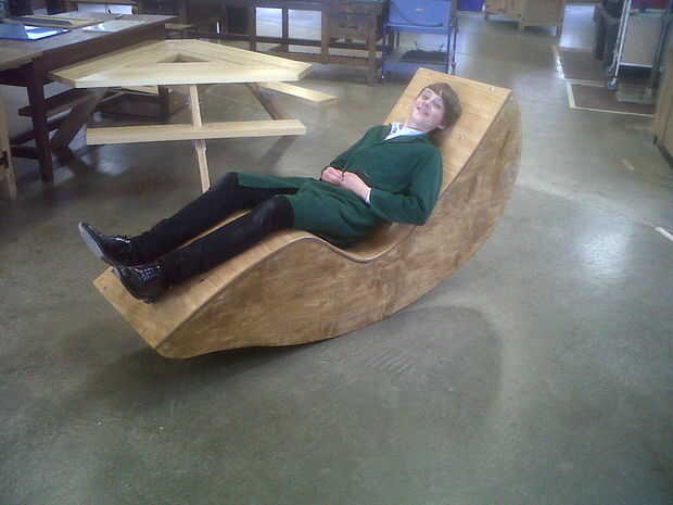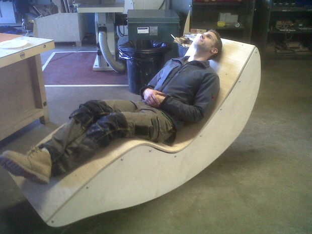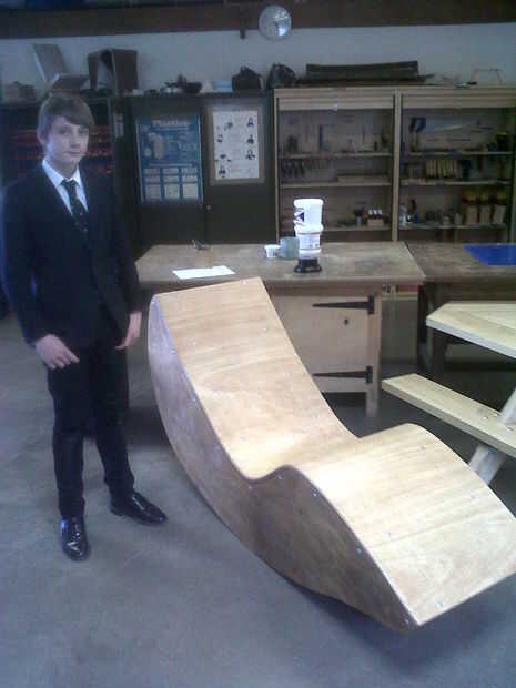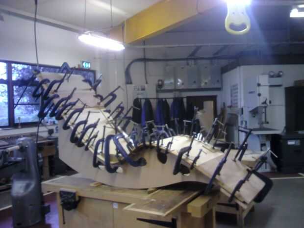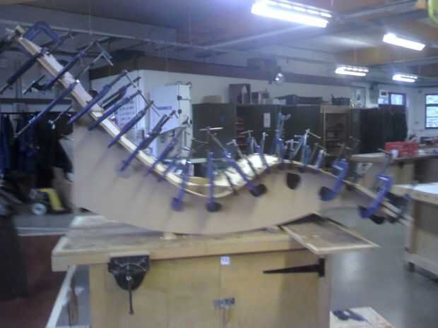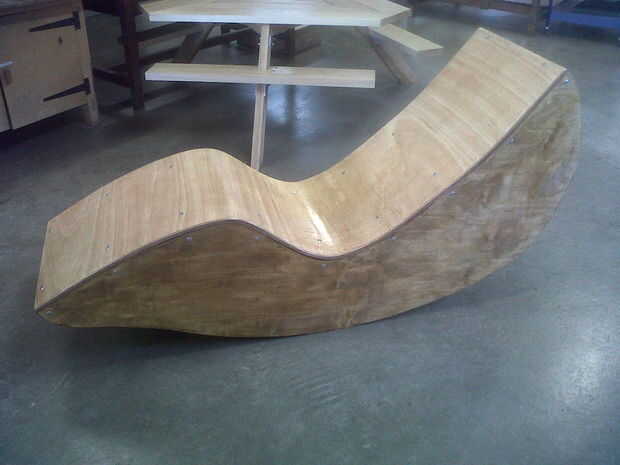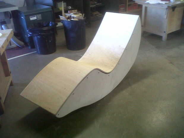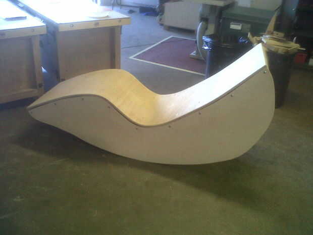 La capa superior de la silla se hace de los lotes de madera de la capa de aleta pegada junto y doblada alrededor de una plantilla como se muestra en las fotos, repite este paso varias veces hasta que ya era lo bastante fuerte como para no frenar.