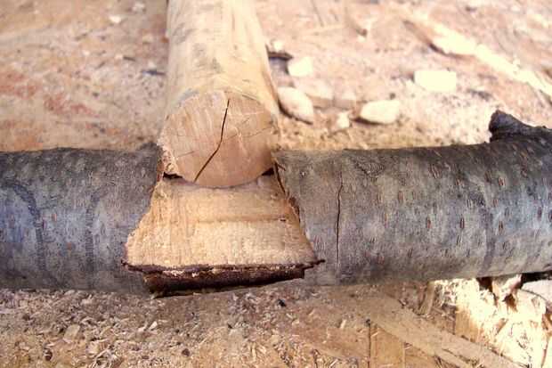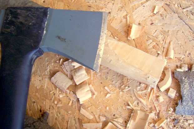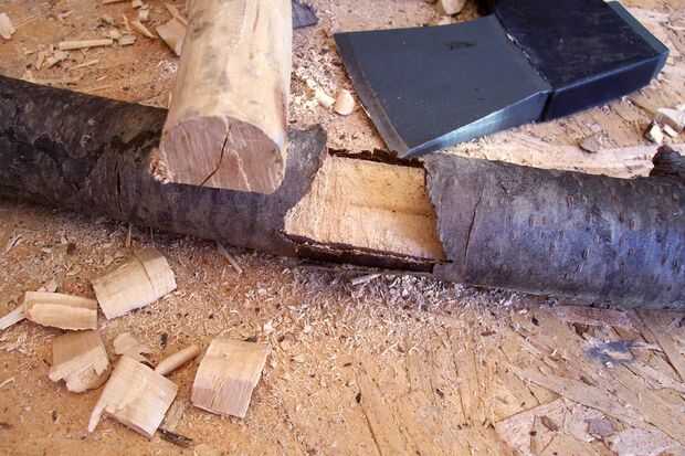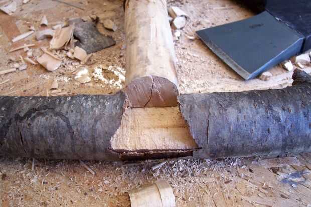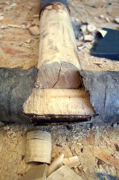 Usar un hacha para añadir el fondo "plano" a los extremos de los registros de Llave de Cruz .