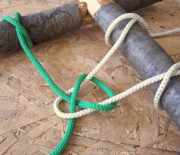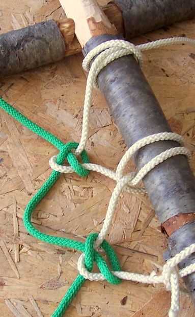 Empezar en un extremo de la llave de Cruz y lazo de enganche de clavo de olor a lo largo de la longitud de la cruceta. Al llegar el otro empate final un ballestrinque alrededor de la pierna de marco A.