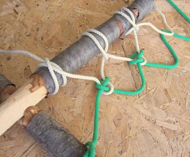 Cada fila está asegurada en las patas del armazón "A" y cada columna está asegurado en la llave de cruz con un ballestrinque en estos lugares.