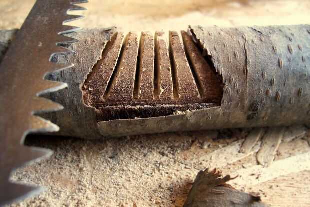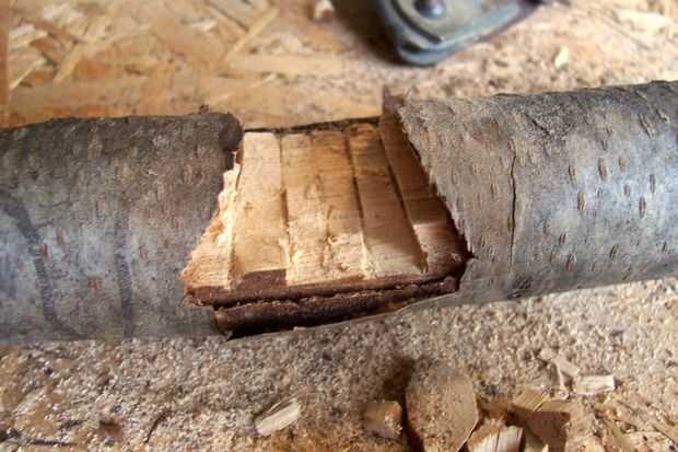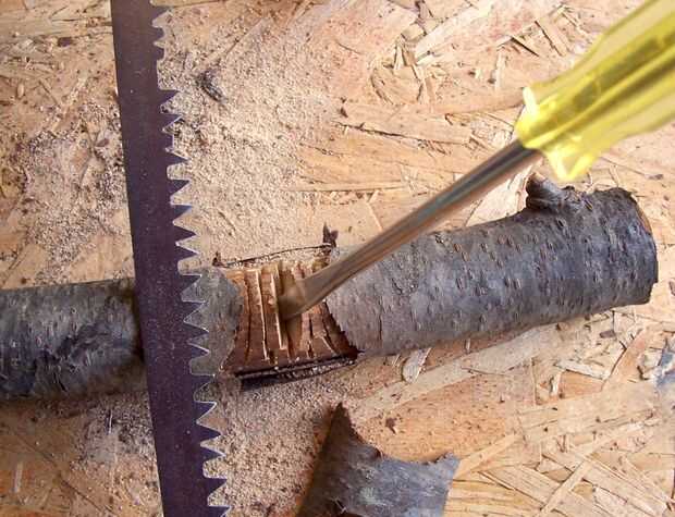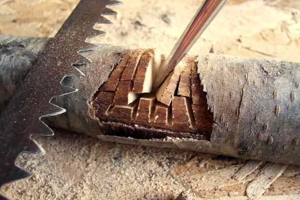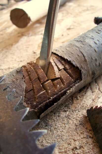 Pequeñas cuñas de madera izquierda entre los cortes pueden ahora quitarse con destornillador, cuchillo o hacha.