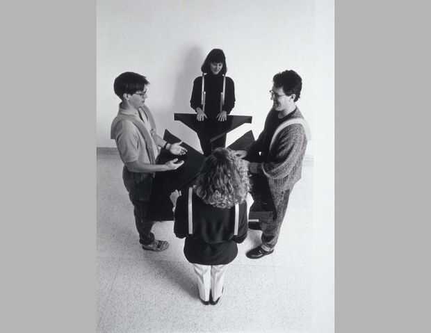 - Allan Wexler ha hecho una serie de muebles que han sido separados de sus geometrías normales - por ejemplo una tabla de cortar en mitades o cuartos - y la relación de las piezas se define por cómo se corta.