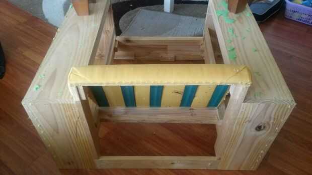 Cuando estaba limpiando la casa de juego y convertir a mi nuevo Shack tachuela me topé con estas tres sillas viejas y un foco de luz salió de mi cabeza. Lo que más necesitábamos en nuestra cubierta no era asiento extra (ya estaba trabajando en eso) p