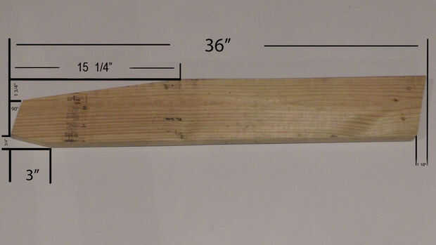 Ahora que las dos patas delanteras se hacen tenemos que hacer las dos patas traseras. Estas patas se realizará fuera de la madera tratada a presión 2 x 6. La madera tendrá que cortarse primero en dos piezas que cada uno tiene una longitud de 36". Las patas traseras están montadas en un ángulo va a necesitar ser cortado como sigue. Mida 3" hacia abajo desde la parte superior de la madera y luego marque 3/4" en la parte superior de la madera. Luego conecte las dos marcas y el ángulo de corte. Ahora que este se corta a medida por 15 1/4" y marque y luego 1 3/4" hacia adentro en la parte superior de la madera. Conectar estas dos marcas y luego realizar el corte. Después de este corte es utilizar un cuadrado de la velocidad para marcar una línea de 90 grados desde el primer corte inicial. Se refieren a la imagen como referencia en cuanto a cómo esto debiera eliminarse. En el lado opuesto Mida y marque abajo 1 1/2" y hacen el corte.