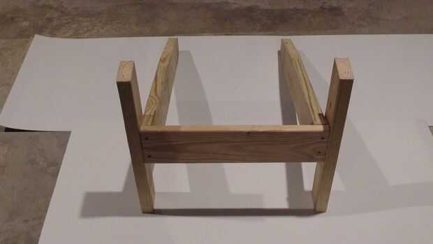 Ahora que las bases de la pierna se hizo es hora de conectar los dos. Vamos a hacer esto mediante la conexión de una pieza de 1 x 6 plataforma corte hasta 21" en la parte delantera. Esta pieza debe fácilmente forma plana y enjuague dentro de la ranura de 1" de antes. Esto puede fijarse con cuatro tornillos. Después de se adjunta debe parecerse a la imagen de arriba.