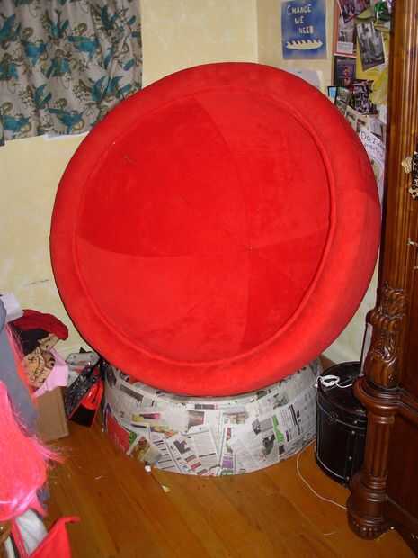 Puede tapizar la silla final como o solo de pintar y llenar con almohadas. Los planes de este instructable son de 4' de diámetro silla que se ajuste a (apenas) a través de una puerta de 30". Usted puede escalar o abajo fácilmente dependiendo del tamaño de la persona se para y como mucho "surround" desea.