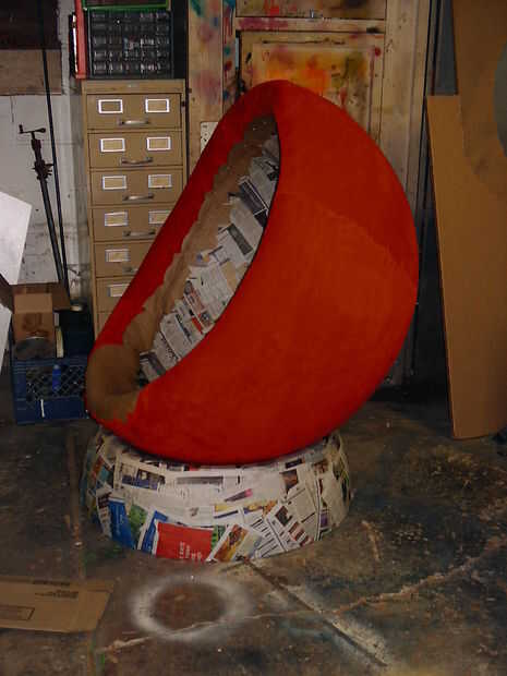 En lugar de tapicería de la silla podría pintada y lleno de cojines o almohadas. Esto sería más fácil y más barato. He dejado la base sin terminar a propósito. El nuevo dueño le gusta la mirada de él. Un cojín de silla papasan de $20 de CraigsList es un amortiguador perfecto para el interior.