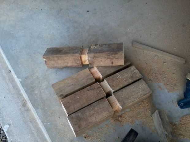 Corte 2" las ranuras anchas de dos lados de cada pierna 1' profundo, que utilicé la tajada VI para esto pero puedes usar una habilidad sierras circulares o cincele como quieras