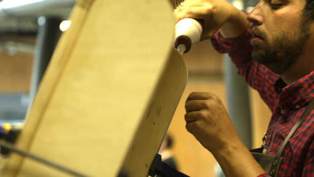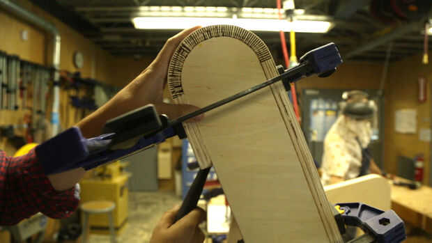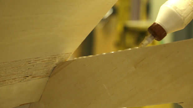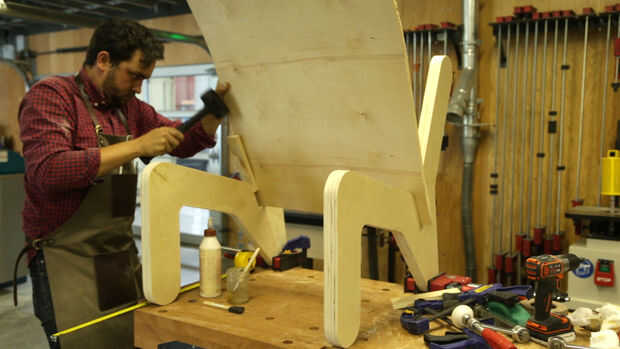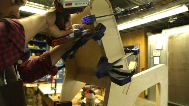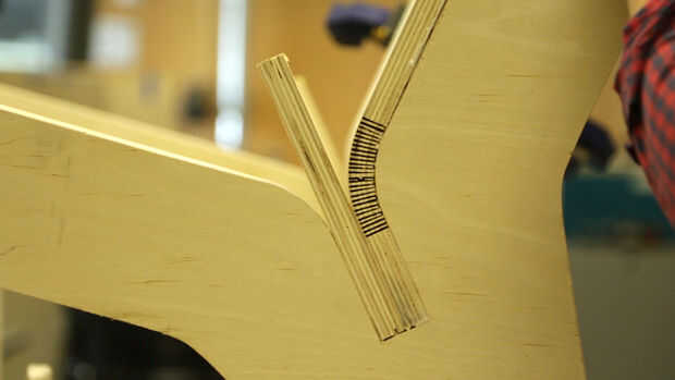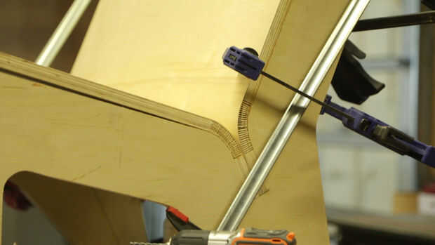 Una vez que las piezas curvadas se sujetaron correctamente a la superficie, añadí los tornillos de las lengüetas redondeadas sobre las piezas del asiento y el respaldo del asiento. Con correcto pegado y fijación, estos tornillos realmente no hacen nada para unir la silla. De todos modos, me gusta el look de ellos-uno dan la impresión de que está reteniendo la acción del resorte de la flexión, que en teoría lo harían.