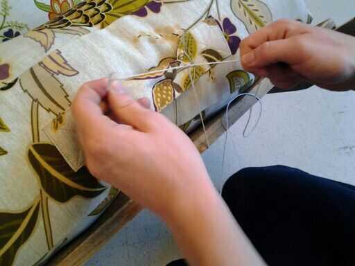 Lugar dos cojines en la silla y lugar ellos te gustaría mantenerlos permenently. Pronto ser engrapadas, pero como un a prueba de fallos para mantener el cojín superior adjuntado, debe conseguir cierta cadena y atarla a la Junta.