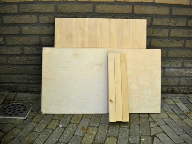 * 2 paneles laterales: dos hojas de madera (50 x 50 cm)