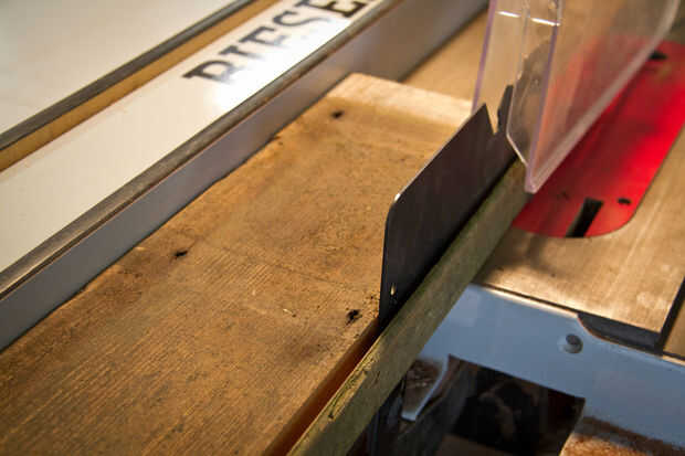 3. ajuste la guía a 3 1/2", voltee la placa y rasgar abajo el otro borde. Ahora tendrás un 2 x 4 con dos bordes limpios.