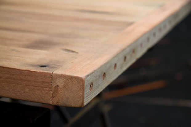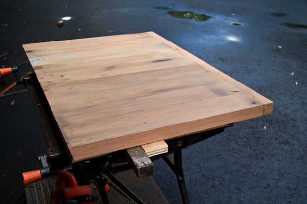 La arena la espalda para que sea lisa y sin astillas. Empecé con papel de lija de grano 80 en la lijadora de banda y acabado con grano 120. Si vas para pintar usted querrá ir incluso más fino, pero grano 120 dio un suave lo suficientemente acabado para la madera cruda. Esto toma un tiempo, incluso con una lijadora de banda.