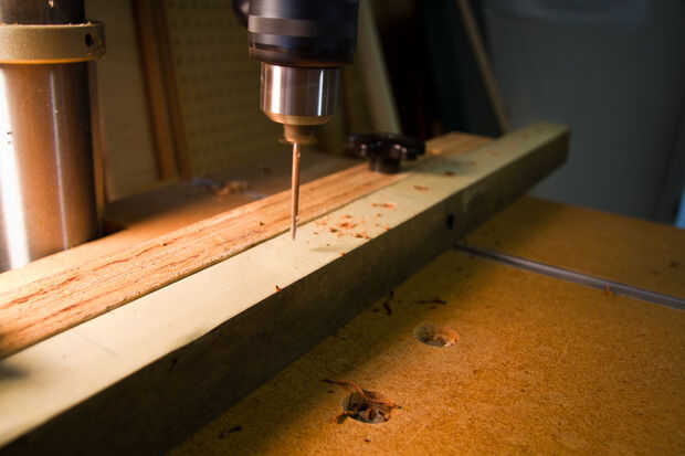 Perforar agujeros en la pieza superior para los tornillos que se sujetan las piezas de la espalda. Se utilice dos tornillos para cada una de las nueve juntas. Una buena técnica para marcar donde el piloto agujeros go es poner un trozo de cinta adhesiva en su madera, a continuación, mida y marque en eso. Los orificios desde 7/8" de cada extremo y están espaciados de 1 3/4" aparte, centrado a lo ancho.