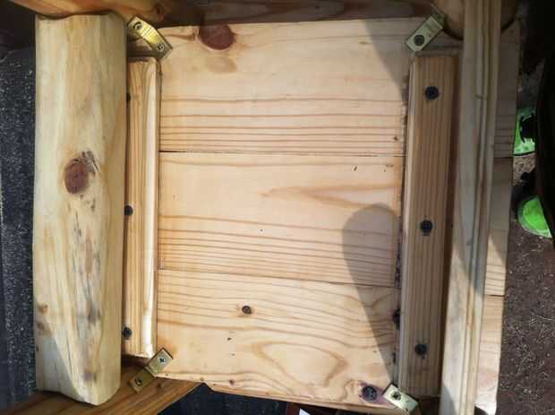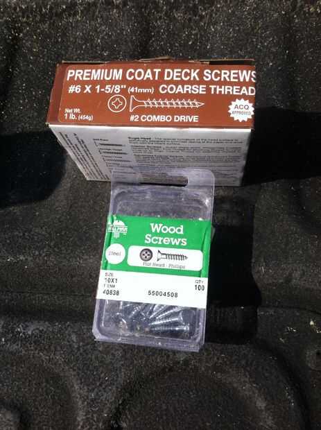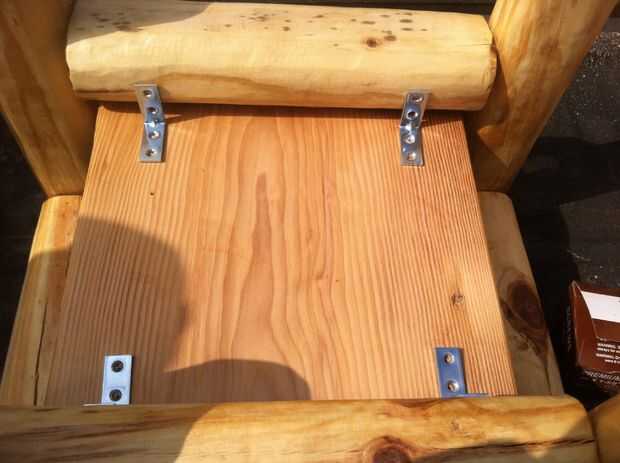 Después de que el poliuretano es seco, coloque los soportes en "L" para el bajo el lado del brazo descansa piernas y asiento / descansa detrás. Usé 1 5/8 in. Y 1 en. Tornillos para asegurar los soportes L. No creo que los tornillos que vienen con los soportes en L eran lo suficientemente largos. Pero podría usar lo que se siente mejor para usted.