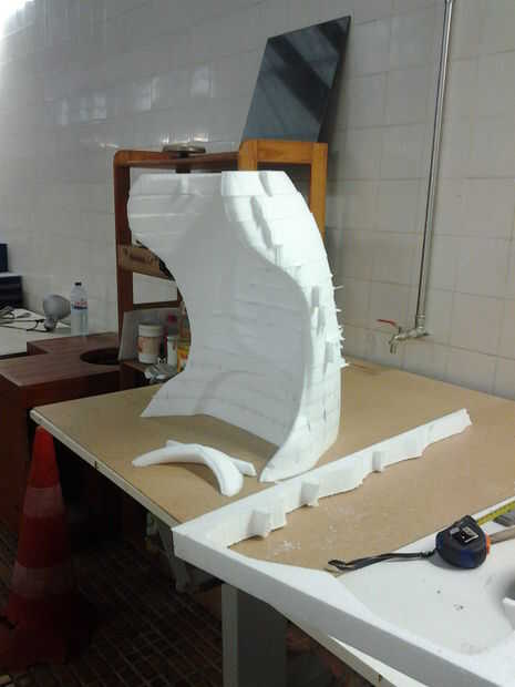 Fundición de una escultura de hormigón de la lámpara con un CNC fresado molde de espuma de poliestireno