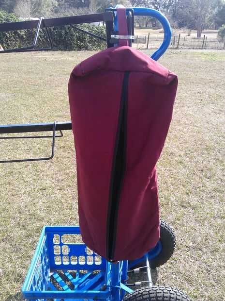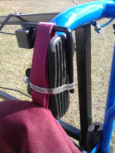 He colgado en el lugar y entonces usa un bungee para fijar la parte inferior al lado de la carretilla. Pongo una brida en la prueba y asegurarse de que sería útil y que lo sería, de hecho, impedir las bridas arrastrando por el suelo. ¡ Funcionó!