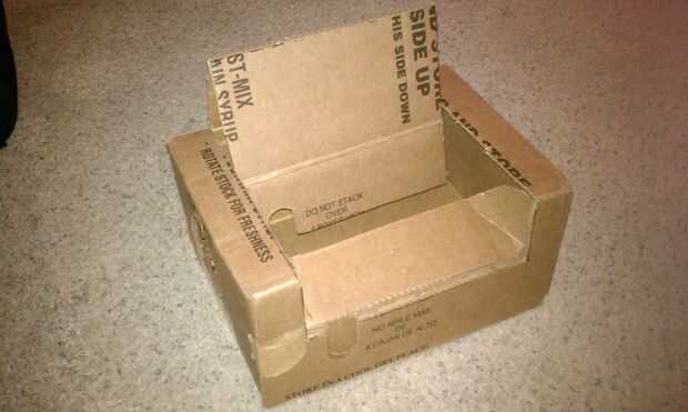 Empuje las secciones de la caja hasta que la sección cortada se convierte en el respaldo de la silla. Si un cuadro tiene una tercera capa interna, marcar esa capa a lo largo de la parte delantera del asiento y dóblela hacia abajo y hacia adentro.