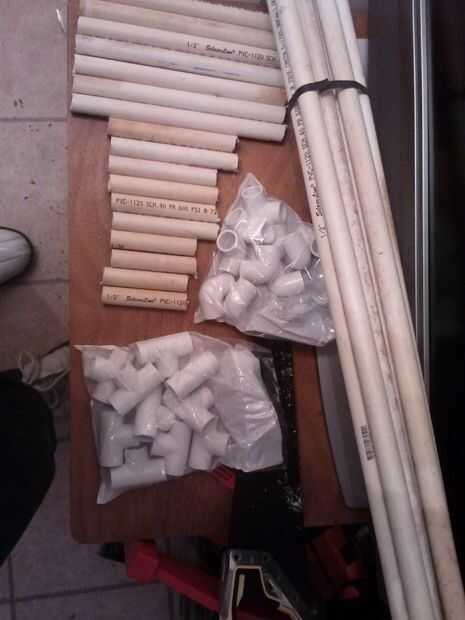 OK im no está seguro lo que es el tubo de pvc de pn de precio porque rescatado les. El Ts y codos pelea en lowes tiene 10 paquete más barato que usted puede comprar 10 separados cuestan aproximadamente $2-$3 por paquete. OK casi todo lo que necesita: pipa, Ts, codos, y si quieres algún cemento pvc pero no usarlo.