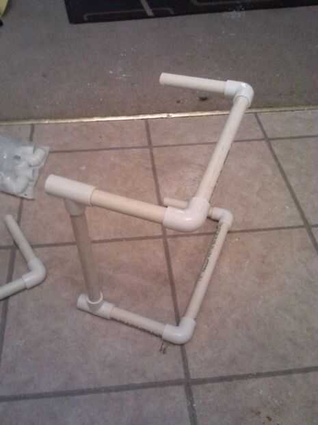 Materiales necesarios:1) PVC 1 x 10 ft (3)2) Cruz PVC montaje (7)3) tee PVC accesorio (4)4) ruedas de (4)5) bola gimnasia (1)6) las tuercas, pernos, arandelas (27 cada)7) cuerda poli EverbiltPaso 1: Solidworks Paso 2: Flexión del PVC El primer paso e