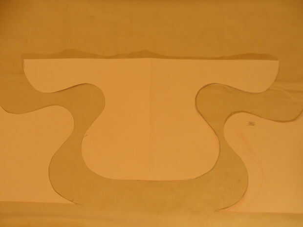 4) dejar de fumar el cartón y dibujar el diseño que desee detrás de la silla tendrá, doblar por la mitad para la simetría y cortar el patrón