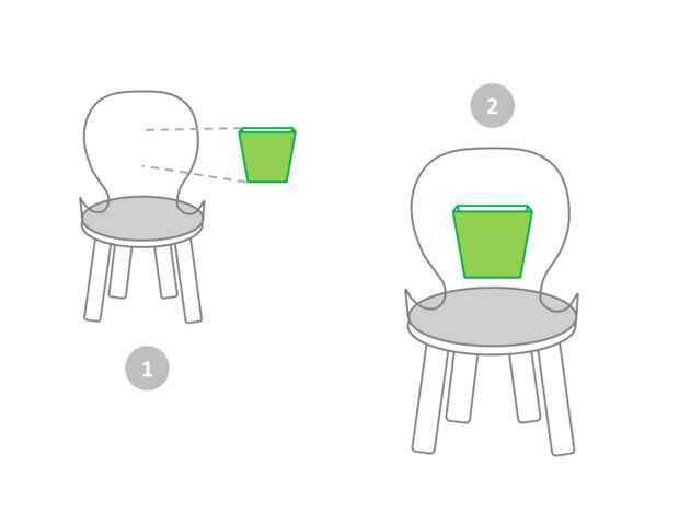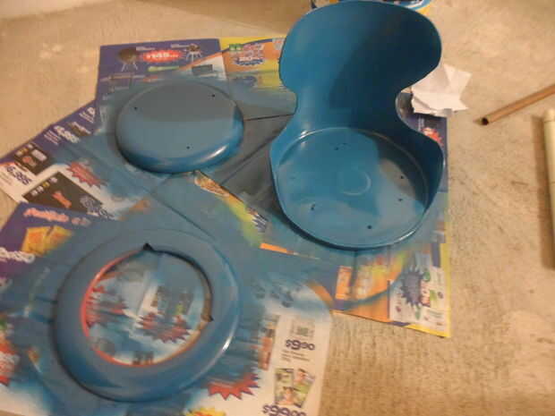 En este punto puede pintar la silla y luego ensamblar las piezas o puede juntar todas las piezas (incluyendo el cubo posterior) y pintar la silla al final.