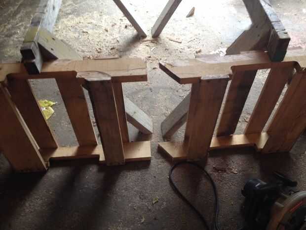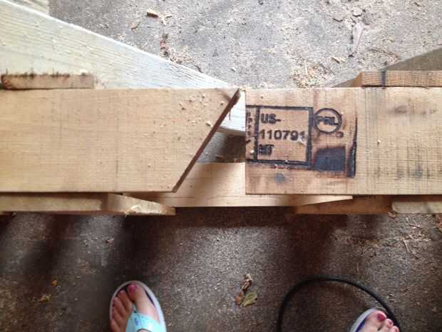 hecha de tablas de palets y madera repuesto. Sólo el costo fue de tornillos y pintura de aerosol.