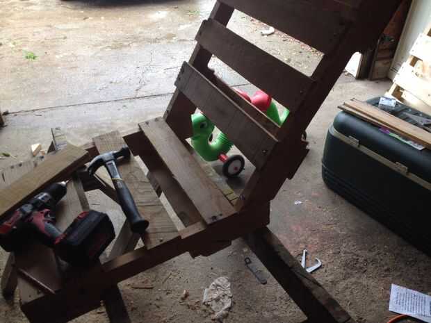 El problema era que siempre colgamos fuera en casa de mi uno amigo, y rompen las sillas de jardín que utilizamos siempre. Mi solución fue diseñar y construir una silla barata, que esperemos que no se romperá pronto, que puede soportar los elementos.P
