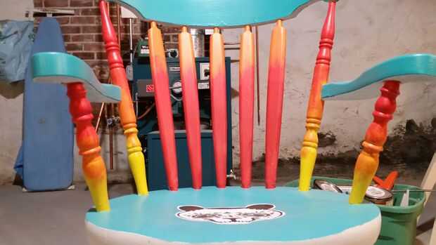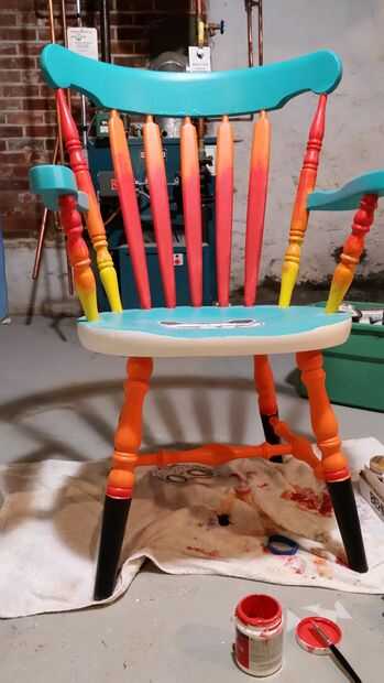 Creo que este proceso es lo que tomó más tiempo. para los 5 principales ejes del respaldo, había pintado naranja. Secado y luego pintado rojo de abajo a arriba y dejando que la presión que tengo hacia la parte superior. Seguí haciendo esto una y otra vez hasta que fui feliz con 5 de ellos.