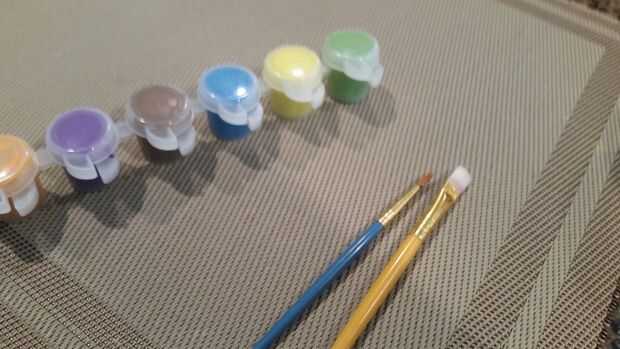 encontrar alguna pintura de mentira alrededor de la casa (todo el mundo esto tiene de otras artes) y un pincel pequeño junto con un cepillo medio.